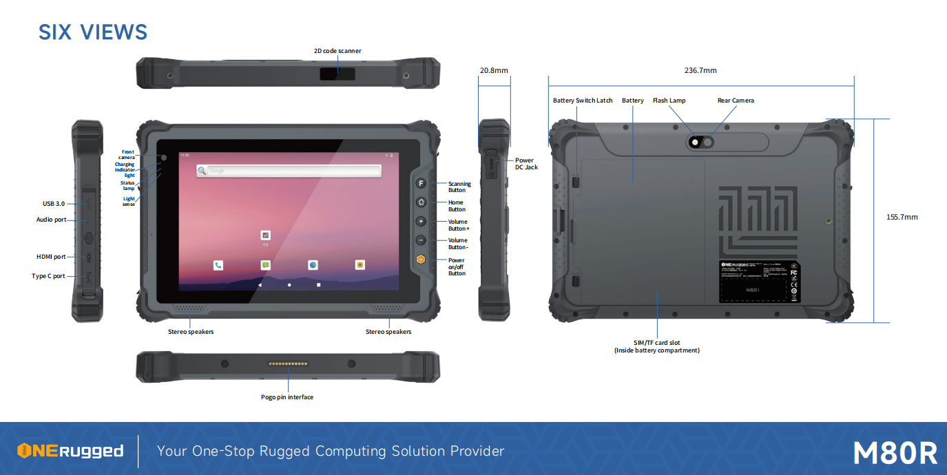 ONEback M80R Прочный планшетный ПК-Rockchip RK3568, Android 12